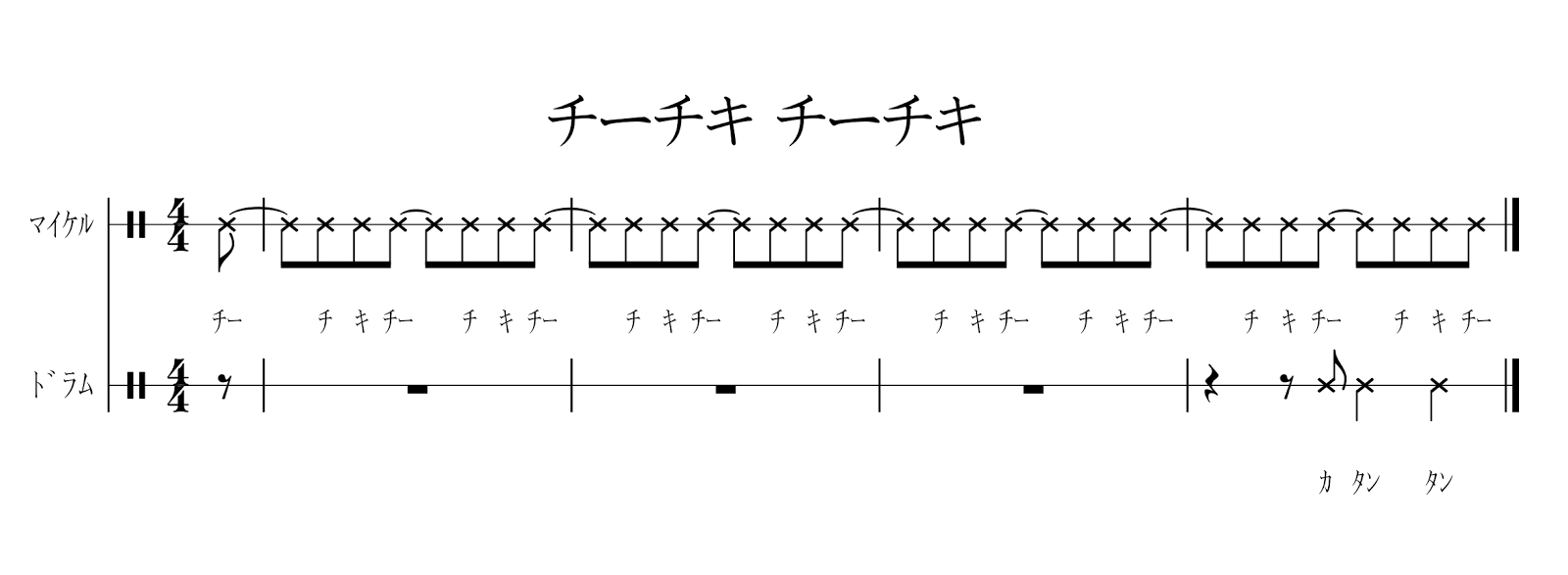 この曲は、マイケル・ジャクソンのヒット曲『ヒューマン・ネイチャー』です。この曲の冒頭でマイケル・ジャクソンが「チーチキ・チーチキ」と歌っていますが、この記事を読んで下さっている皆様は、このリズムをどの様に聴き取りましたでしょうか。