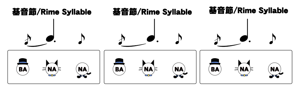音節基が強拍であることに対し 頭子音 及び 末子音 は弱拍に対応します。