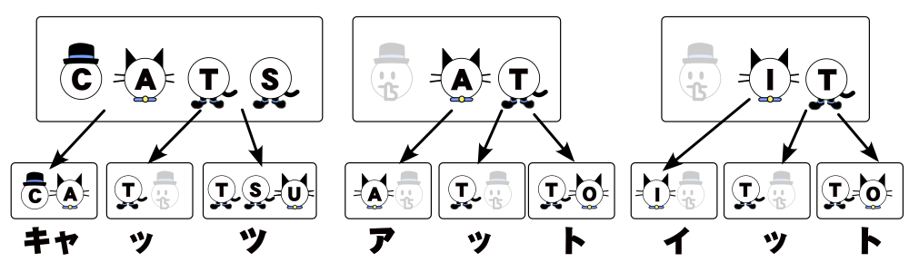 この図中で帽子が頭子音、猫が音節核、靴が末子音を表しています。