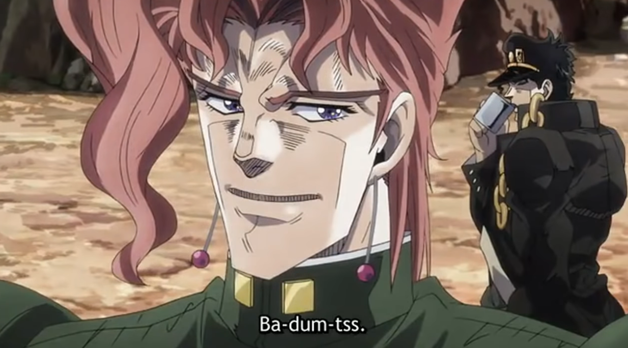 日本の「ちゃんちゃん」は英語で ba dum tss と翻訳されている。ジョジョの不思議な冒険「マニッシュ・ボーイ」Credit : https://t.co/hRYKOraxdq pic.twitter.com/Oym4ZIsLUD