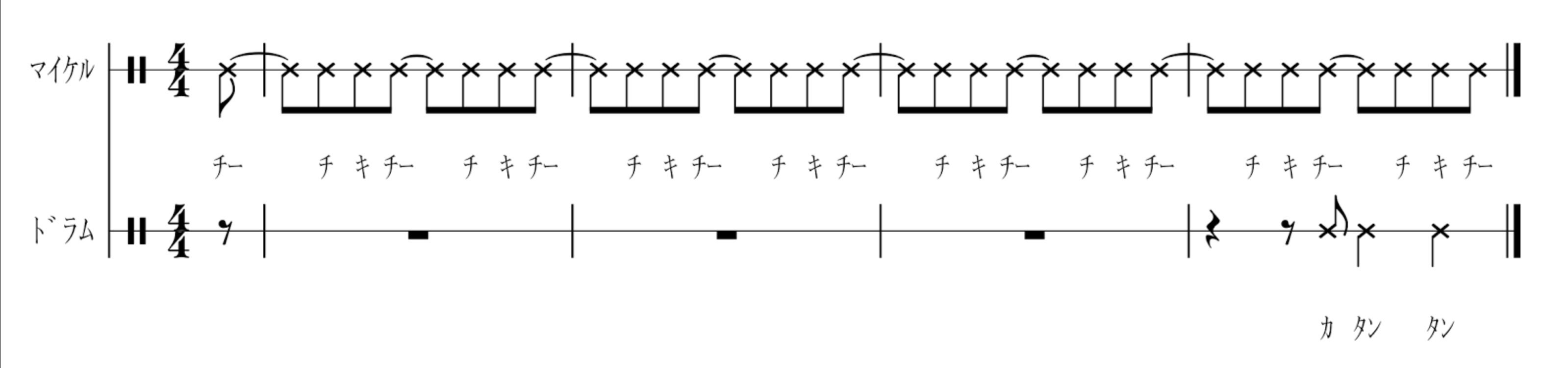 この曲は、マイケル・ジャクソンのヒット曲『ヒューマン・ネイチャー』です。この曲の冒頭でマイケル・ジャクソンが「チーチキ・チーチキ」と歌っていますが、この記事を読んで下さっている皆様は、このリズムをどの様に聴き取りましたでしょうか。
